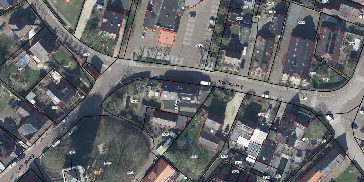 Het perceel waarop Koningsweg 21 staat heeft een oppervlakte van 1000 m². Dit is een zeer groot perceel. De perceeloppervlakte wordt geregistreerd door het Kadaster. Gedetailleerde informatie over de maten van dit perceel kunt u vinden in het rapport Kadastrale kaart met maatvoering van Koningsweg 21.