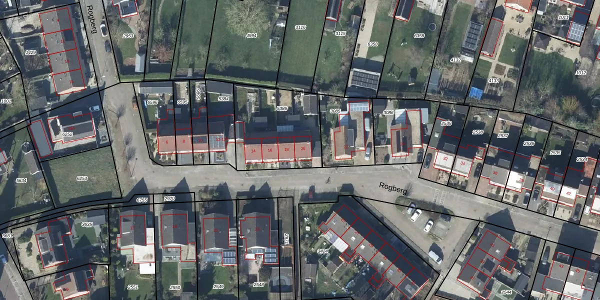 Het perceel waarop Rogberg 20 staat heeft een oppervlakte van 777 m². Dit is een groot perceel. De perceeloppervlakte wordt geregistreerd door het Kadaster. Gedetailleerde informatie over de maten van dit perceel kunt u vinden in het rapport Kadastrale kaart met maatvoering van Rogberg 20.