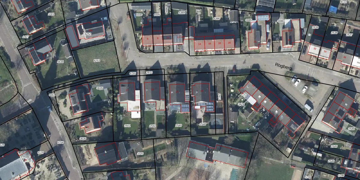 Het perceel waarop Rogberg 21 staat heeft een oppervlakte van 479 m². Dit is een groot perceel. De perceeloppervlakte wordt geregistreerd door het Kadaster. Gedetailleerde informatie over de maten van dit perceel kunt u vinden in het rapport Kadastrale kaart met maatvoering van Rogberg 21.
