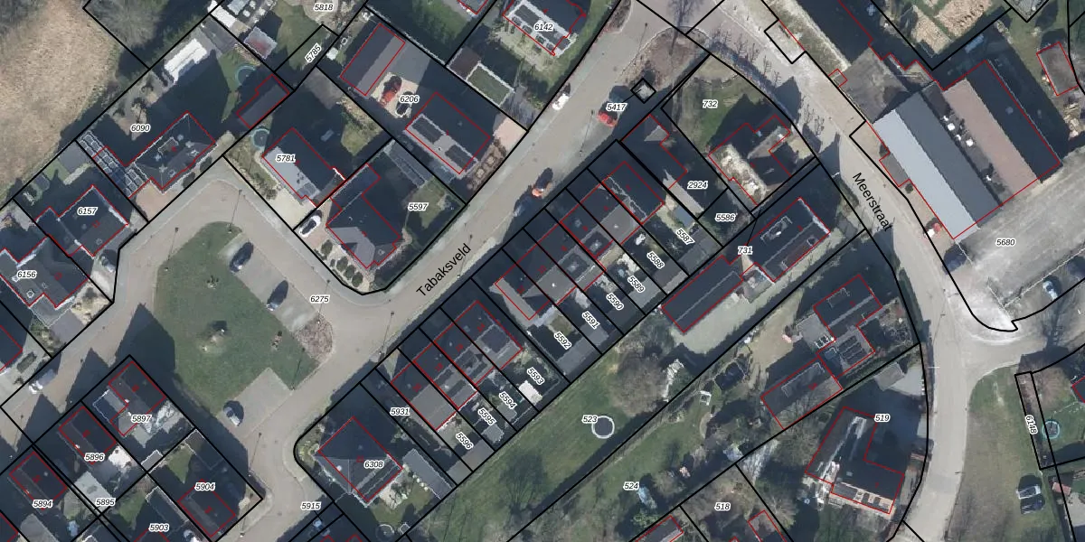 Tabaksveld 10 is gelegen op kadastraal perceel DTN03C5591. Deze kadastrale aanduiding is uniek en wordt gebruikt door het Kadaster om eigendomsrechten en andere zakelijke rechten vast te leggen. Het perceel maakt onderdeel uit van de kadastrale gemeente Druten.