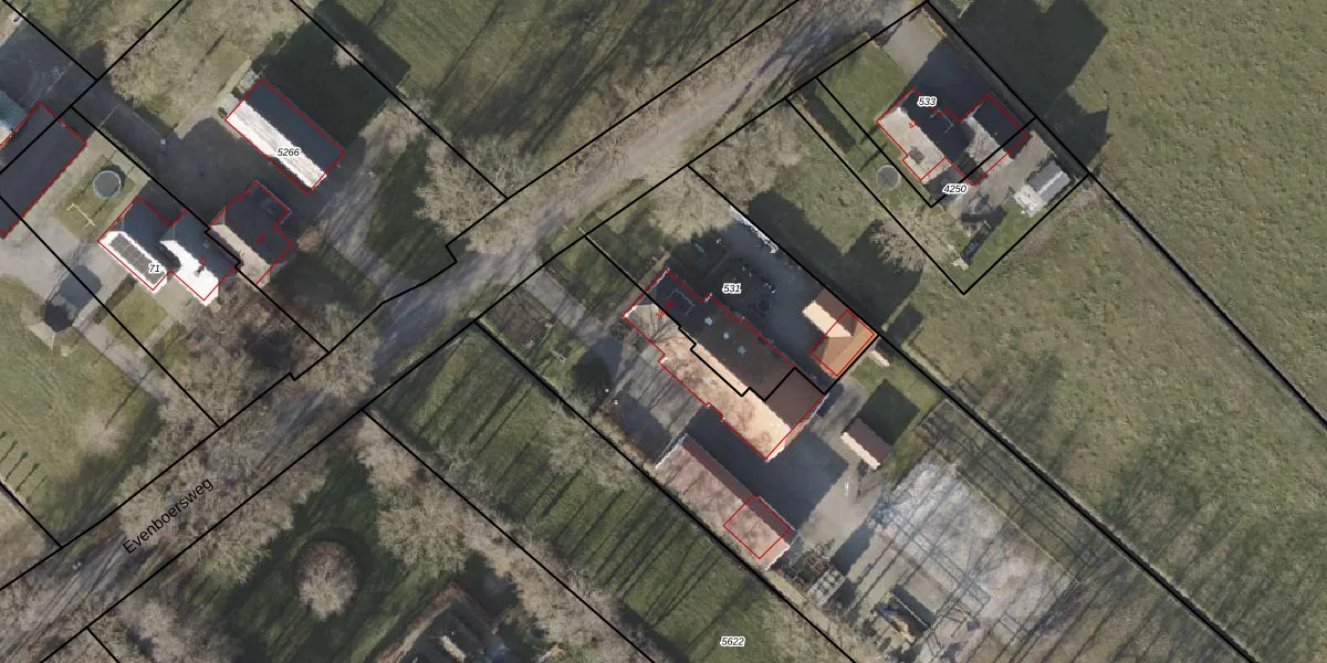 Het perceel waarop Evenboersweg 38 staat heeft een oppervlakte van 1,2 ha. Dit is een zeer groot perceel. De perceeloppervlakte wordt geregistreerd door het Kadaster. Gedetailleerde informatie over de maten van dit perceel kunt u vinden in het rapport Kadastrale kaart met maatvoering van Evenboersweg 38.