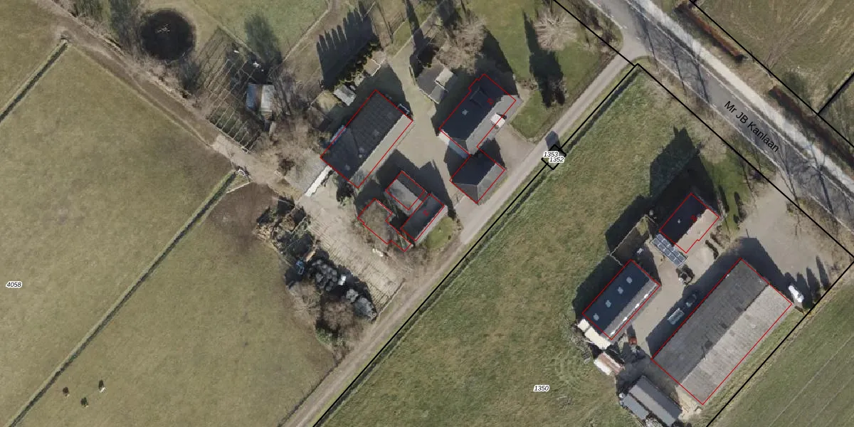 Het perceel waarop Mr JB Kanlaan 54 staat heeft een oppervlakte van 3,9 ha. Dit is een zeer groot perceel. De perceeloppervlakte wordt geregistreerd door het Kadaster. Gedetailleerde informatie over de maten van dit perceel kunt u vinden in het rapport Kadastrale kaart met maatvoering van Mr JB Kanlaan 54.