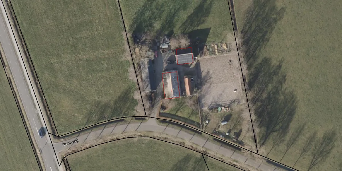 Het perceel waarop Puntweg 1 staat heeft een oppervlakte van 1,5 ha. Dit is een zeer groot perceel. De perceeloppervlakte wordt geregistreerd door het Kadaster. Gedetailleerde informatie over de maten van dit perceel kunt u vinden in het rapport Kadastrale kaart met maatvoering van Puntweg 1.