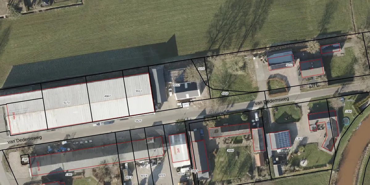 Het perceel waarop van Dedemsweg 1 staat heeft een oppervlakte van 645 m². Dit is een groot perceel. De perceeloppervlakte wordt geregistreerd door het Kadaster. Gedetailleerde informatie over de maten van dit perceel kunt u vinden in het rapport Kadastrale kaart met maatvoering van van Dedemsweg 1.