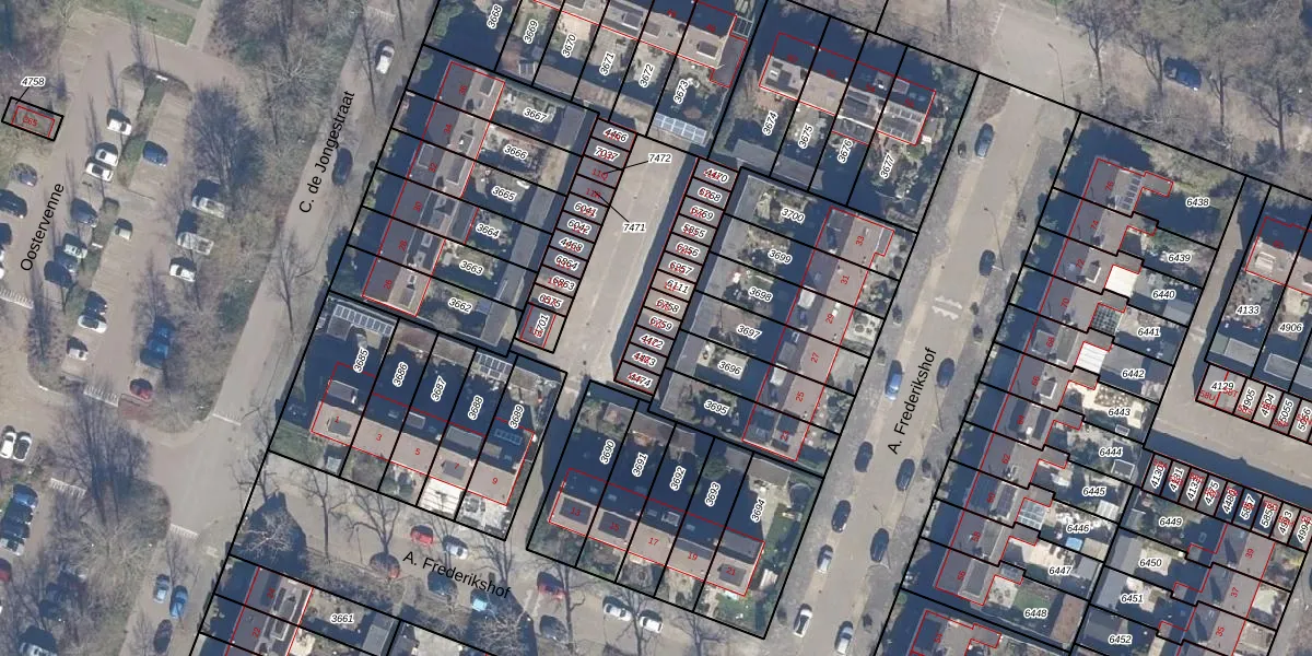 Het perceel waarop A. Frederikshof 11-D staat heeft een oppervlakte van 20 m². Dit is een klein perceel. De perceeloppervlakte wordt geregistreerd door het Kadaster. Gedetailleerde informatie over de maten van dit perceel kunt u vinden in het rapport Kadastrale kaart met maatvoering van A. Frederikshof 11-D.