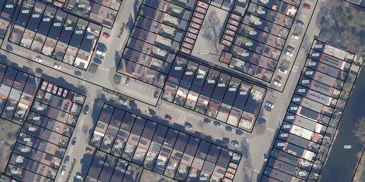 Gebruik de zoekbalk of klik op een perceel voor informatie over de adressen binnen dit perceel.