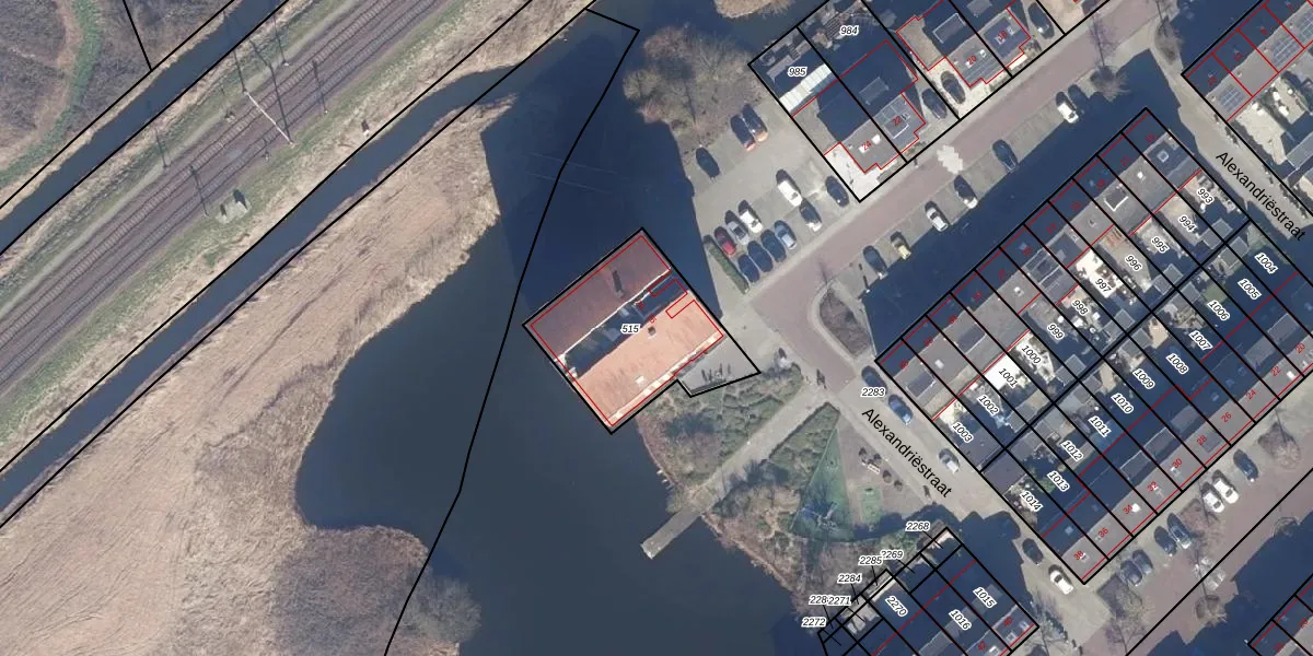 Het perceel waarop Alexandriëstraat 40 staat heeft een oppervlakte van 555 m². Dit is een groot perceel. De perceeloppervlakte wordt geregistreerd door het Kadaster. Gedetailleerde informatie over de maten van dit perceel kunt u vinden in het rapport Kadastrale kaart met maatvoering van Alexandriëstraat 40.