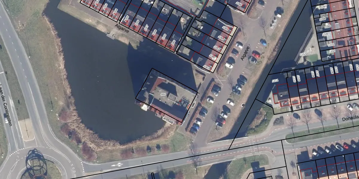 Het perceel waarop Algarve 11 staat heeft een oppervlakte van 550 m². Dit is een groot perceel. De perceeloppervlakte wordt geregistreerd door het Kadaster. Gedetailleerde informatie over de maten van dit perceel kunt u vinden in het rapport Kadastrale kaart met maatvoering van Algarve 11.