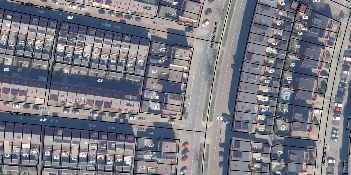 Het perceel waarop Amazonelaan 108 staat heeft een oppervlakte van 167 m². Dit is een middelgroot perceel. De perceeloppervlakte wordt geregistreerd door het Kadaster. Gedetailleerde informatie over de maten van dit perceel kunt u vinden in het rapport Kadastrale kaart met maatvoering van Amazonelaan 108.