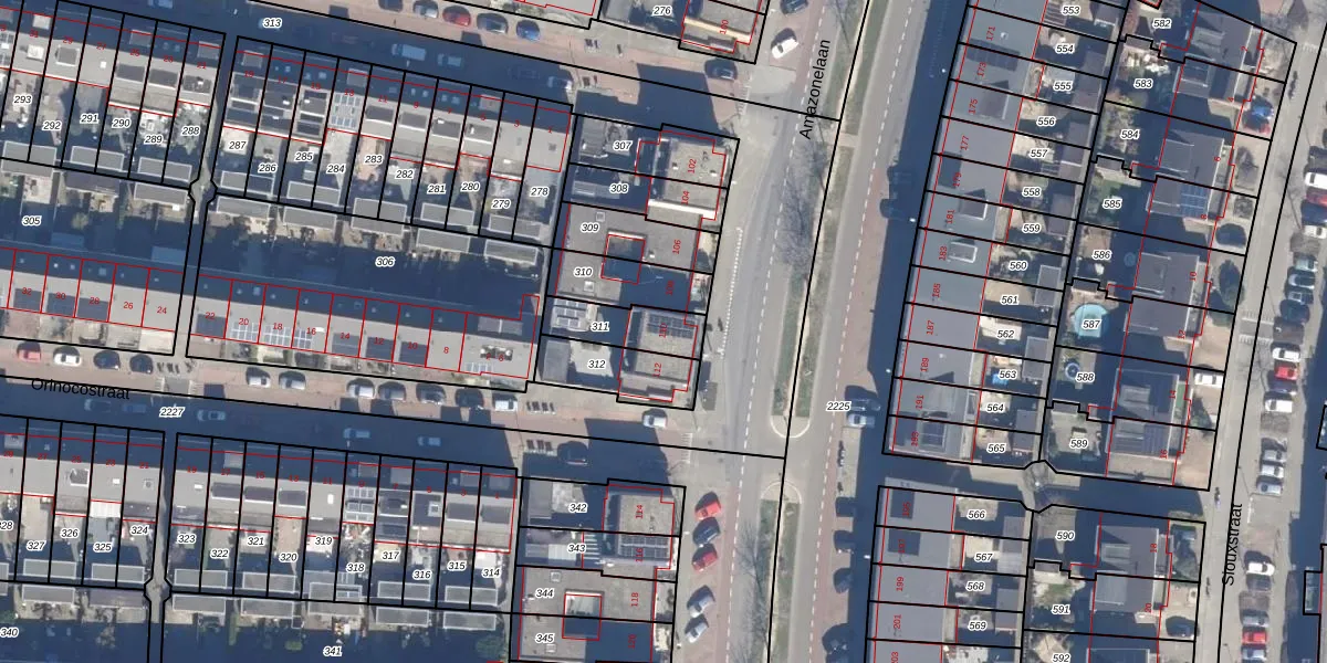 Gebruik de zoekbalk of klik op een perceel voor informatie over de adressen binnen dit perceel.
