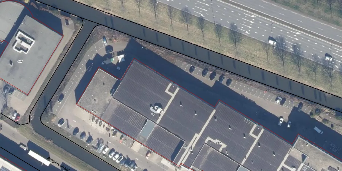 Het perceel waarop Ampèrestraat 61 staat heeft een oppervlakte van 1,6 ha. Dit is een zeer groot perceel. De perceeloppervlakte wordt geregistreerd door het Kadaster. Gedetailleerde informatie over de maten van dit perceel kunt u vinden in het rapport Kadastrale kaart met maatvoering van Ampèrestraat 61.