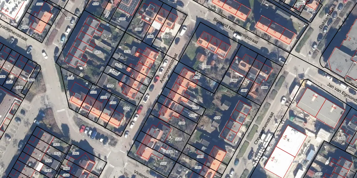 Het perceel waarop Anemonenstraat 5 staat heeft een oppervlakte van 1232 m². Dit is een zeer groot perceel. De perceeloppervlakte wordt geregistreerd door het Kadaster. Gedetailleerde informatie over de maten van dit perceel kunt u vinden in het rapport Kadastrale kaart met maatvoering van Anemonenstraat 5.