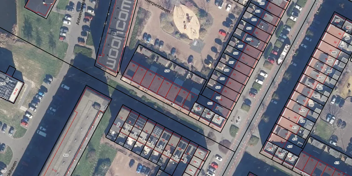 Het perceel waarop Antwerpenhaven 33 staat heeft een oppervlakte van 990 m². Dit is een groot perceel. De perceeloppervlakte wordt geregistreerd door het Kadaster. Gedetailleerde informatie over de maten van dit perceel kunt u vinden in het rapport Kadastrale kaart met maatvoering van Antwerpenhaven 33.
