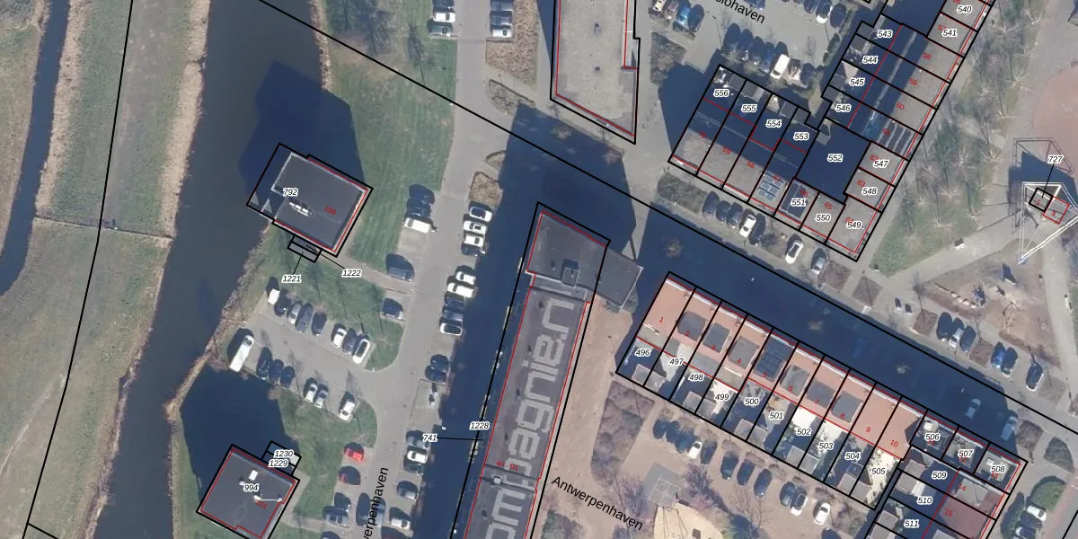 Het perceel waarop Antwerpenhaven 40 staat heeft een oppervlakte van 1345 m². Dit is een zeer groot perceel. De perceeloppervlakte wordt geregistreerd door het Kadaster. Gedetailleerde informatie over de maten van dit perceel kunt u vinden in het rapport Kadastrale kaart met maatvoering van Antwerpenhaven 40.