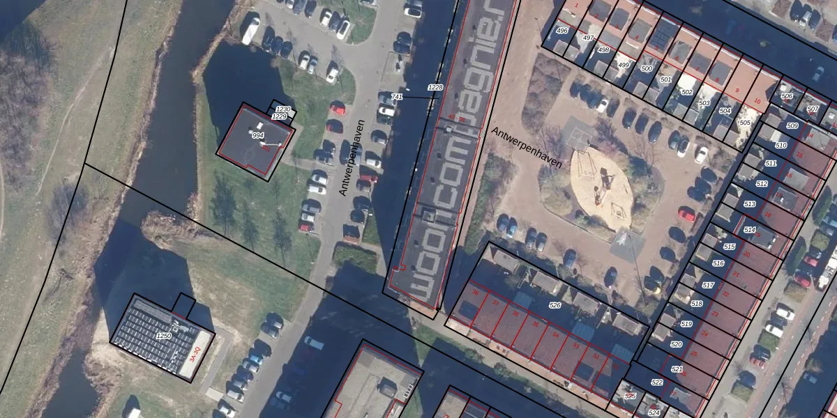 Het perceel waarop Antwerpenhaven 55 staat heeft een oppervlakte van 1345 m². Dit is een zeer groot perceel. De perceeloppervlakte wordt geregistreerd door het Kadaster. Gedetailleerde informatie over de maten van dit perceel kunt u vinden in het rapport Kadastrale kaart met maatvoering van Antwerpenhaven 55.