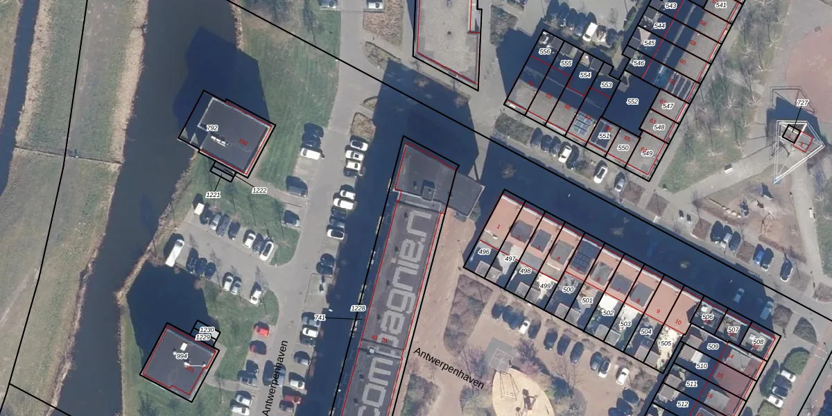 Het perceel waarop Antwerpenhaven 62 staat heeft een oppervlakte van 1345 m². Dit is een zeer groot perceel. De perceeloppervlakte wordt geregistreerd door het Kadaster. Gedetailleerde informatie over de maten van dit perceel kunt u vinden in het rapport Kadastrale kaart met maatvoering van Antwerpenhaven 62.