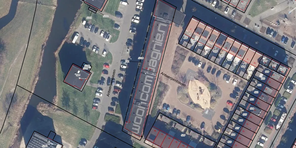 Het perceel waarop Antwerpenhaven 71 staat heeft een oppervlakte van 1345 m². Dit is een zeer groot perceel. De perceeloppervlakte wordt geregistreerd door het Kadaster. Gedetailleerde informatie over de maten van dit perceel kunt u vinden in het rapport Kadastrale kaart met maatvoering van Antwerpenhaven 71.