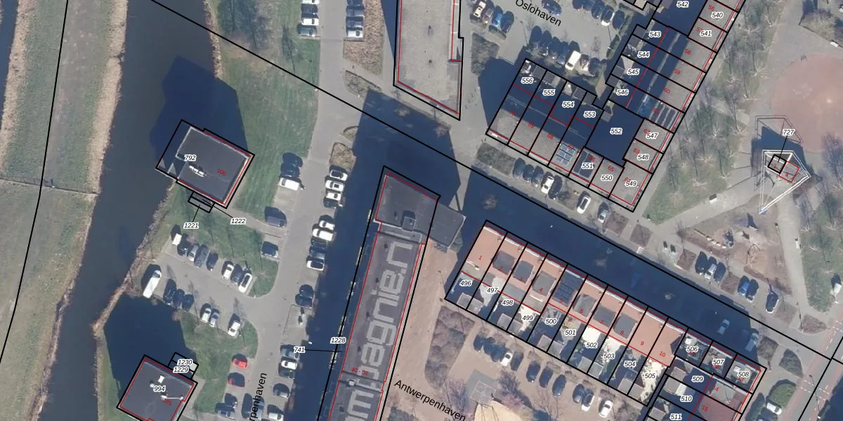 Het perceel waarop Antwerpenhaven 81 staat heeft een oppervlakte van 1345 m². Dit is een zeer groot perceel. De perceeloppervlakte wordt geregistreerd door het Kadaster. Gedetailleerde informatie over de maten van dit perceel kunt u vinden in het rapport Kadastrale kaart met maatvoering van Antwerpenhaven 81.