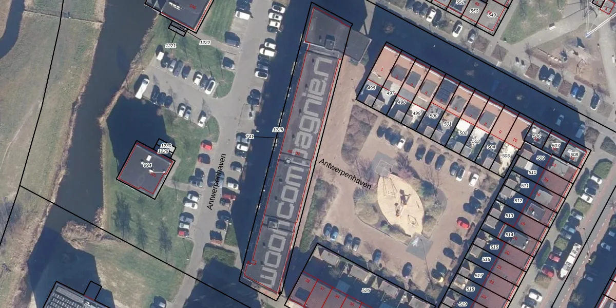Het perceel waarop Antwerpenhaven 91 staat heeft een oppervlakte van 1345 m². Dit is een zeer groot perceel. De perceeloppervlakte wordt geregistreerd door het Kadaster. Gedetailleerde informatie over de maten van dit perceel kunt u vinden in het rapport Kadastrale kaart met maatvoering van Antwerpenhaven 91.