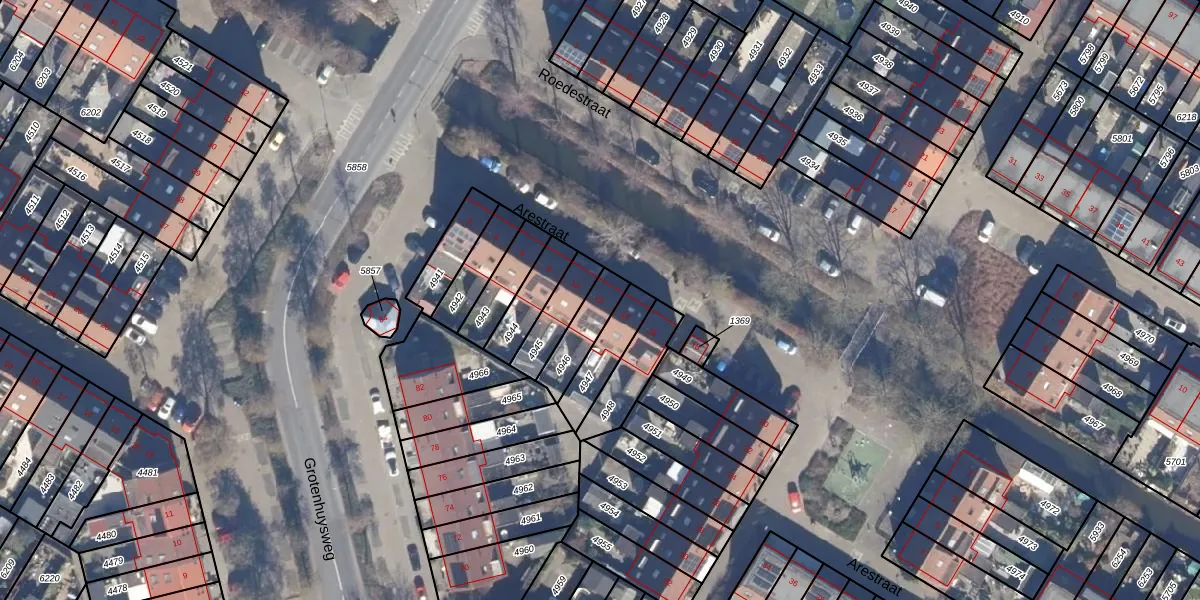 Gebruik de zoekbalk of klik op een perceel voor informatie over de adressen binnen dit perceel.