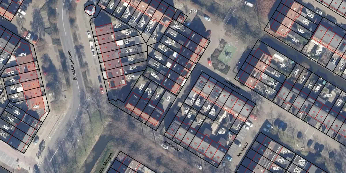Het perceel waarop Arestraat 32 staat heeft een oppervlakte van 147 m². Dit is een middelgroot perceel. De perceeloppervlakte wordt geregistreerd door het Kadaster. Gedetailleerde informatie over de maten van dit perceel kunt u vinden in het rapport Kadastrale kaart met maatvoering van Arestraat 32.