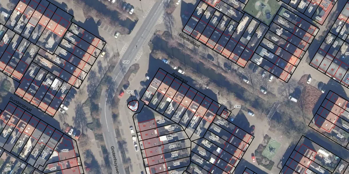 Het perceel waarop Arestraat 6 staat heeft een oppervlakte van 113 m². Dit is een middelgroot perceel. De perceeloppervlakte wordt geregistreerd door het Kadaster. Gedetailleerde informatie over de maten van dit perceel kunt u vinden in het rapport Kadastrale kaart met maatvoering van Arestraat 6.