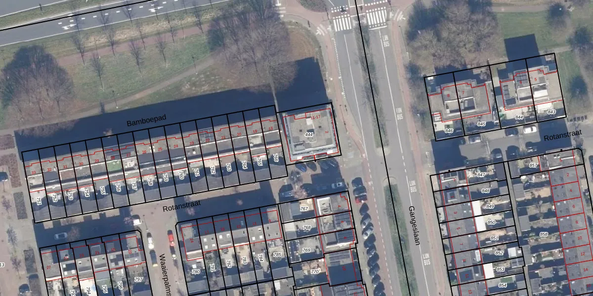Het perceel waarop Bamboepad 16 staat heeft een oppervlakte van 354 m². Dit is een groot perceel. De perceeloppervlakte wordt geregistreerd door het Kadaster. Gedetailleerde informatie over de maten van dit perceel kunt u vinden in het rapport Kadastrale kaart met maatvoering van Bamboepad 16.
