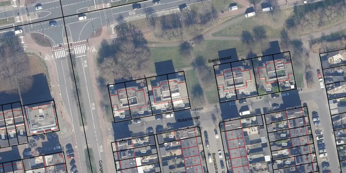 Het perceel waarop Bamboepad 5 staat heeft een oppervlakte van 218 m². Dit is een middelgroot perceel. De perceeloppervlakte wordt geregistreerd door het Kadaster. Gedetailleerde informatie over de maten van dit perceel kunt u vinden in het rapport Kadastrale kaart met maatvoering van Bamboepad 5.