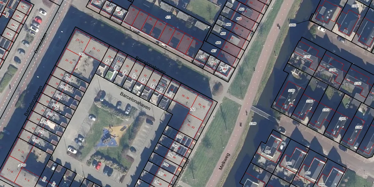 Het perceel waarop Barcelonahaven 38 staat heeft een oppervlakte van 489 m². Dit is een groot perceel. De perceeloppervlakte wordt geregistreerd door het Kadaster. Gedetailleerde informatie over de maten van dit perceel kunt u vinden in het rapport Kadastrale kaart met maatvoering van Barcelonahaven 38.