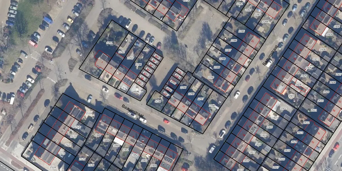 Het perceel waarop Bazuinstraat 11-D staat heeft een oppervlakte van 40 m². Dit is een klein perceel. De perceeloppervlakte wordt geregistreerd door het Kadaster. Gedetailleerde informatie over de maten van dit perceel kunt u vinden in het rapport Kadastrale kaart met maatvoering van Bazuinstraat 11-D.