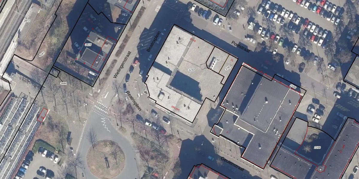Het perceel waarop Beatrixplein 212 staat heeft een oppervlakte van 1445 m². Dit is een zeer groot perceel. De perceeloppervlakte wordt geregistreerd door het Kadaster. Gedetailleerde informatie over de maten van dit perceel kunt u vinden in het rapport Kadastrale kaart met maatvoering van Beatrixplein 212.