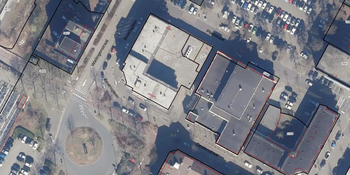 Het perceel waarop Beatrixplein 230 staat heeft een oppervlakte van 1445 m². Dit is een zeer groot perceel. De perceeloppervlakte wordt geregistreerd door het Kadaster. Gedetailleerde informatie over de maten van dit perceel kunt u vinden in het rapport Kadastrale kaart met maatvoering van Beatrixplein 230.