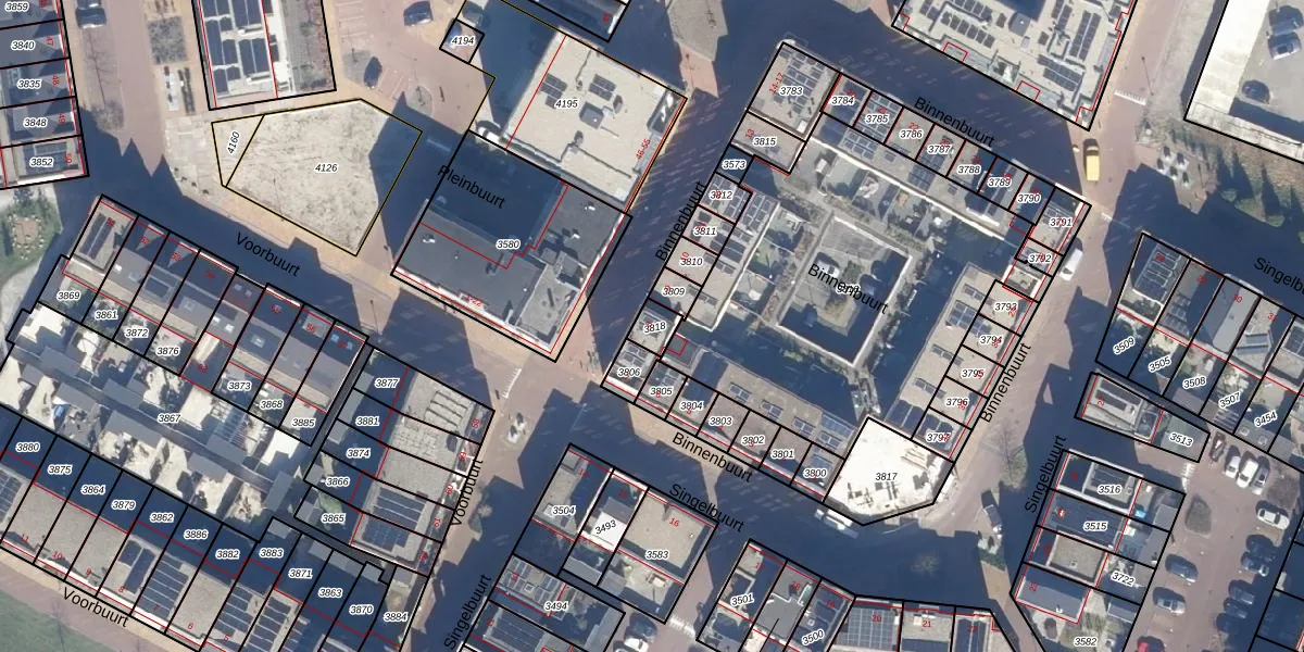 Het perceel waarop Binnenbuurt 8 staat heeft een oppervlakte van 44 m². Dit is een klein perceel. De perceeloppervlakte wordt geregistreerd door het Kadaster. Gedetailleerde informatie over de maten van dit perceel kunt u vinden in het rapport Kadastrale kaart met maatvoering van Binnenbuurt 8.