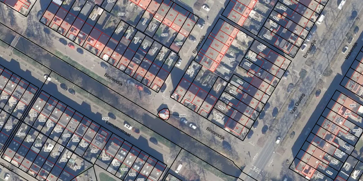 Gebruik de zoekbalk of klik op een perceel voor informatie over de adressen binnen dit perceel.