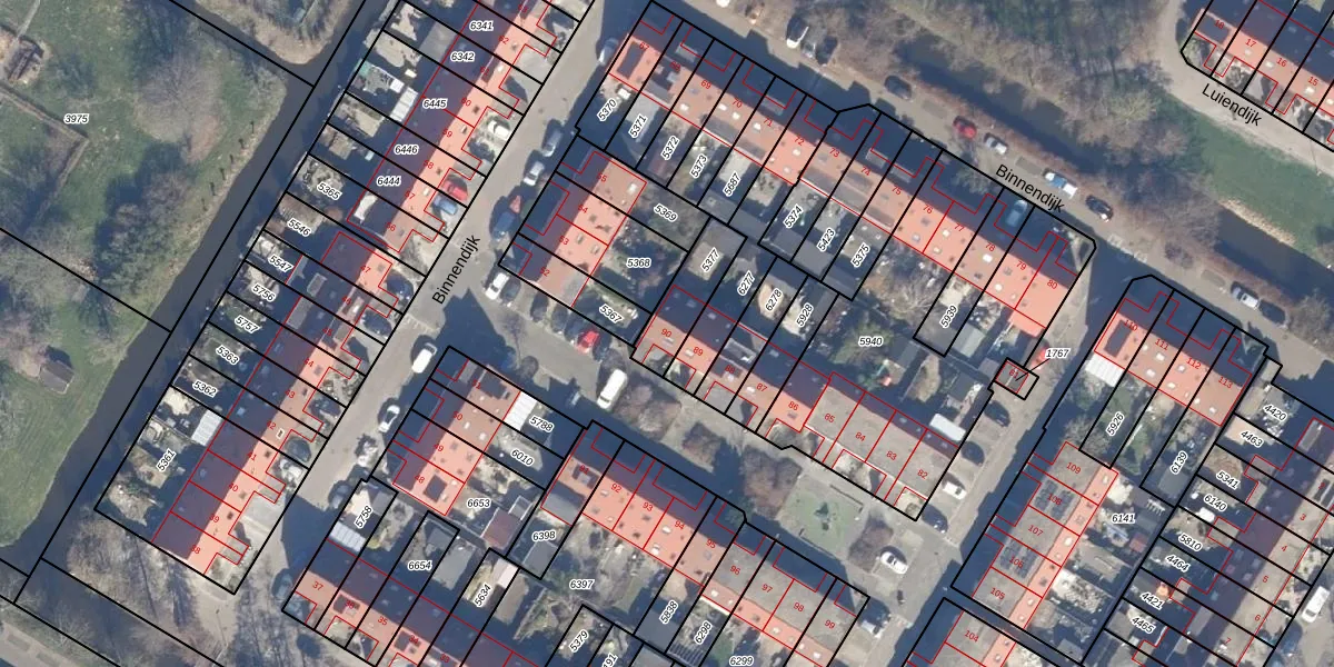 Het perceel waarop Binnendijk 90 staat heeft een oppervlakte van 150 m². Dit is een middelgroot perceel. De perceeloppervlakte wordt geregistreerd door het Kadaster. Gedetailleerde informatie over de maten van dit perceel kunt u vinden in het rapport Kadastrale kaart met maatvoering van Binnendijk 90.
