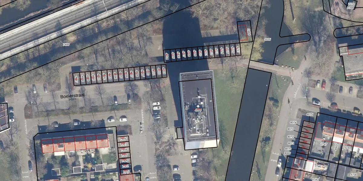 Het perceel waarop Boeierstraat 107 staat heeft een oppervlakte van 702 m². Dit is een groot perceel. De perceeloppervlakte wordt geregistreerd door het Kadaster. Gedetailleerde informatie over de maten van dit perceel kunt u vinden in het rapport Kadastrale kaart met maatvoering van Boeierstraat 107.