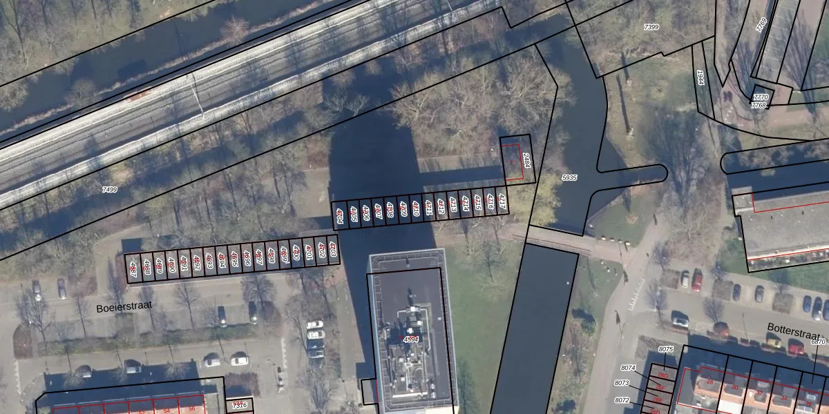 Het perceel waarop Boeierstraat 23 staat heeft een oppervlakte van 21 m². Dit is een klein perceel. De perceeloppervlakte wordt geregistreerd door het Kadaster. Gedetailleerde informatie over de maten van dit perceel kunt u vinden in het rapport Kadastrale kaart met maatvoering van Boeierstraat 23.