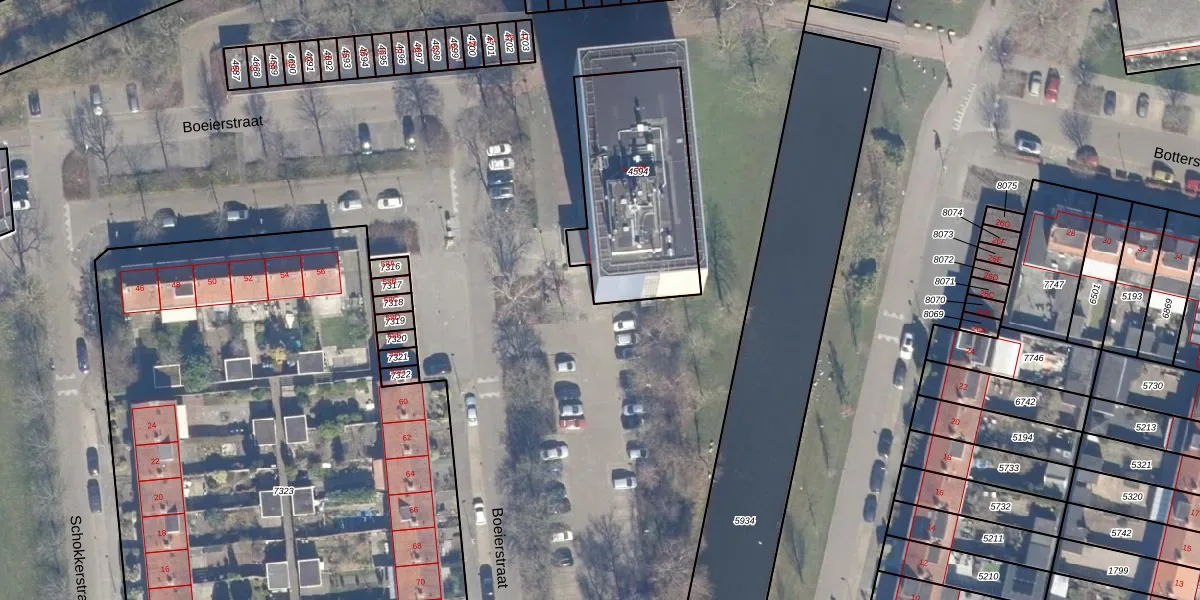 Het perceel waarop Boeierstraat 339 staat heeft een oppervlakte van 702 m². Dit is een groot perceel. De perceeloppervlakte wordt geregistreerd door het Kadaster. Gedetailleerde informatie over de maten van dit perceel kunt u vinden in het rapport Kadastrale kaart met maatvoering van Boeierstraat 339.