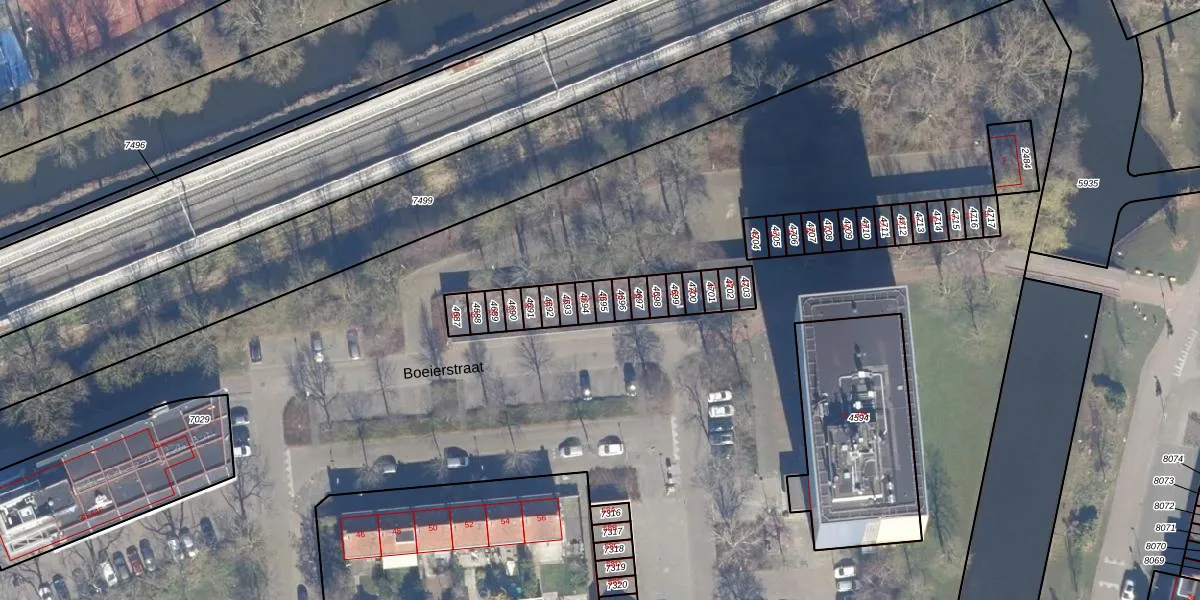 Het perceel waarop Boeierstraat 53 staat heeft een oppervlakte van 21 m². Dit is een klein perceel. De perceeloppervlakte wordt geregistreerd door het Kadaster. Gedetailleerde informatie over de maten van dit perceel kunt u vinden in het rapport Kadastrale kaart met maatvoering van Boeierstraat 53.