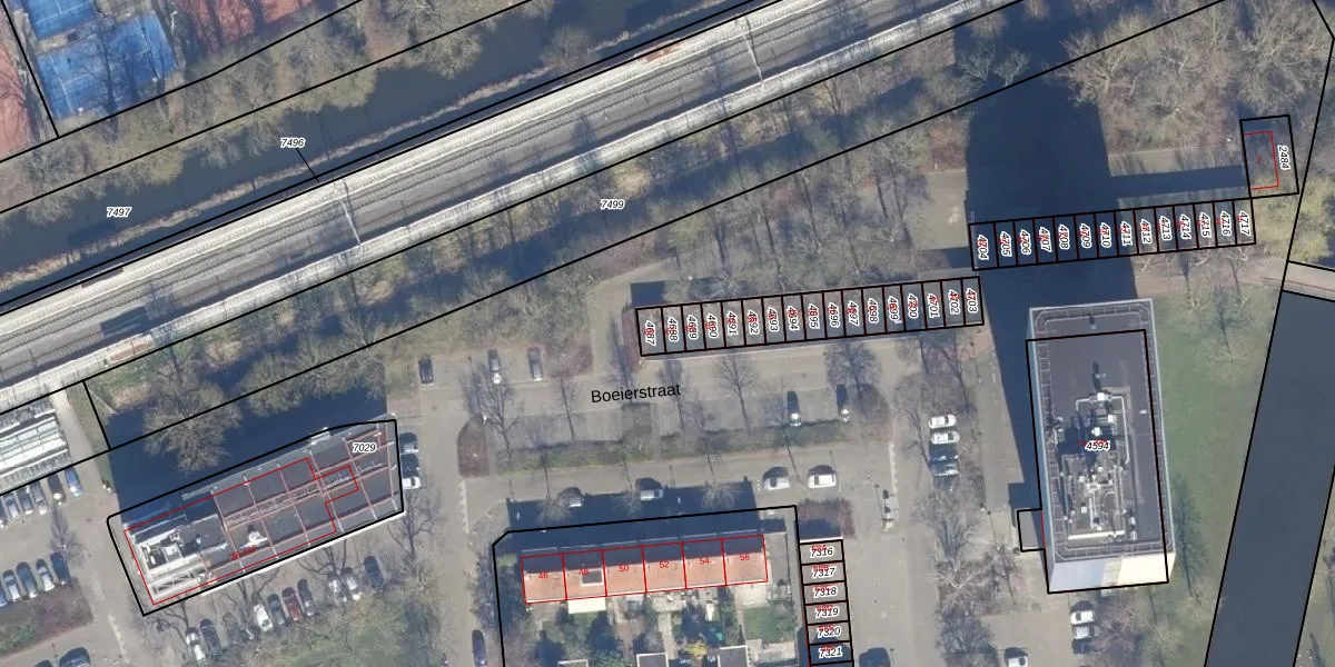 Het perceel waarop Boeierstraat 67 staat heeft een oppervlakte van 21 m². Dit is een klein perceel. De perceeloppervlakte wordt geregistreerd door het Kadaster. Gedetailleerde informatie over de maten van dit perceel kunt u vinden in het rapport Kadastrale kaart met maatvoering van Boeierstraat 67.