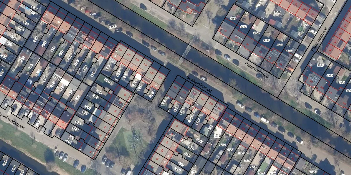 Het perceel waarop Boekweitstraat 121 staat heeft een oppervlakte van 120 m². Dit is een middelgroot perceel. De perceeloppervlakte wordt geregistreerd door het Kadaster. Gedetailleerde informatie over de maten van dit perceel kunt u vinden in het rapport Kadastrale kaart met maatvoering van Boekweitstraat 121.
