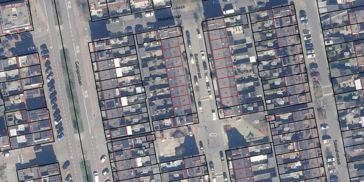 Het perceel waarop Bonsaistraat 12 staat heeft een oppervlakte van 1161 m². Dit is een zeer groot perceel. De perceeloppervlakte wordt geregistreerd door het Kadaster. Gedetailleerde informatie over de maten van dit perceel kunt u vinden in het rapport Kadastrale kaart met maatvoering van Bonsaistraat 12.