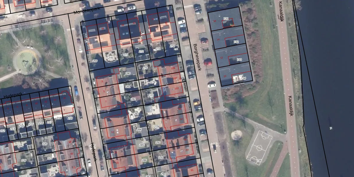 Gebruik de zoekbalk of klik op een perceel voor informatie over de adressen binnen dit perceel.