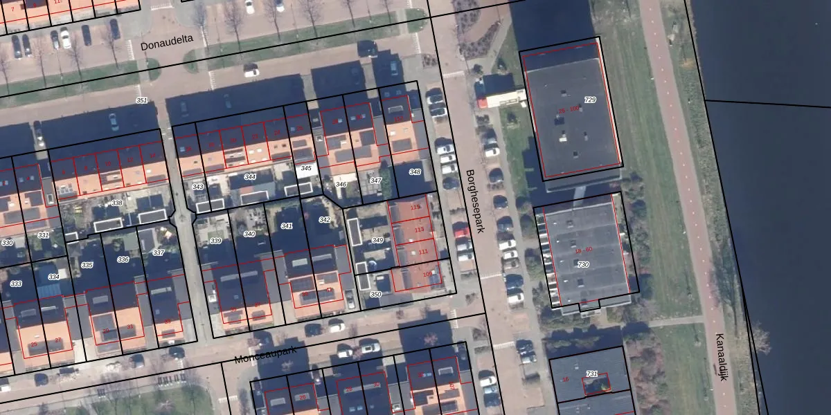 Het perceel waarop Borghesepark 115 staat heeft een oppervlakte van 382 m². Dit is een groot perceel. De perceeloppervlakte wordt geregistreerd door het Kadaster. Gedetailleerde informatie over de maten van dit perceel kunt u vinden in het rapport Kadastrale kaart met maatvoering van Borghesepark 115.