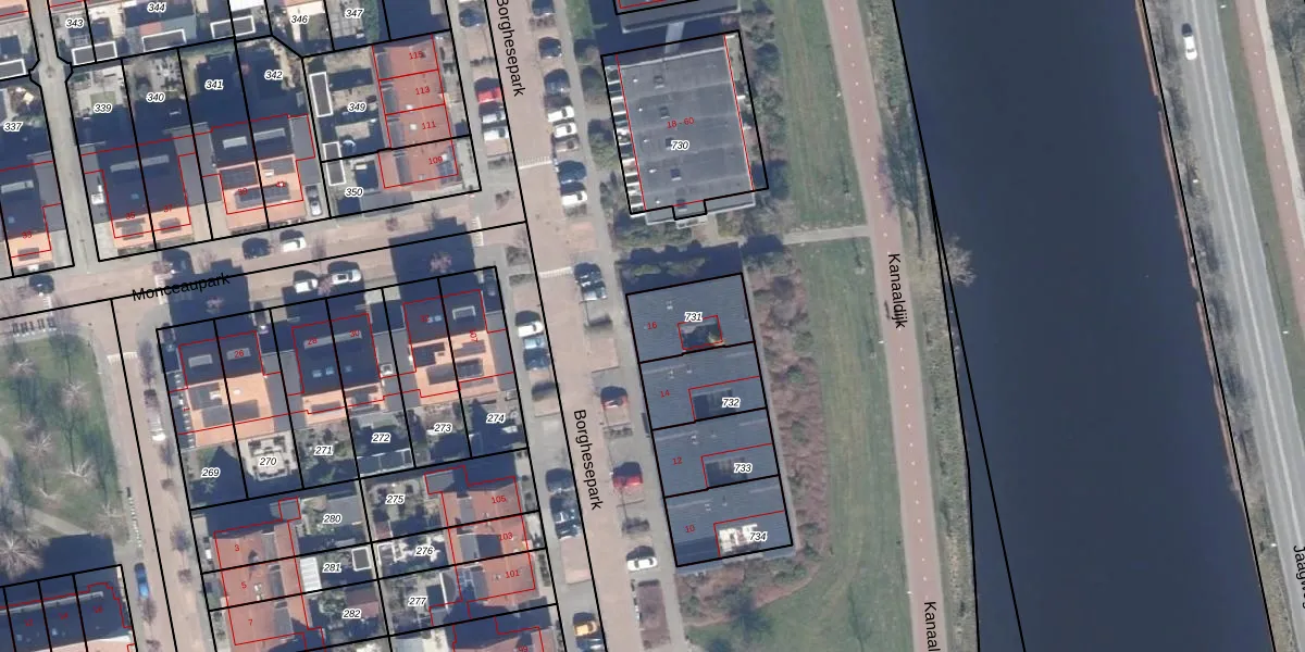 Borghesepark 16 is gelegen op kadastraal perceel PMR00K731. Deze kadastrale aanduiding is uniek en wordt gebruikt door het Kadaster om eigendomsrechten en andere zakelijke rechten vast te leggen. Het perceel maakt onderdeel uit van de kadastrale gemeente Purmerend.
