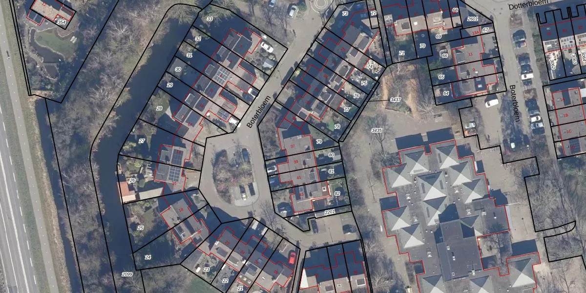 Het perceel waarop Boterbloem 37 staat heeft een oppervlakte van 304 m². Dit is een groot perceel. De perceeloppervlakte wordt geregistreerd door het Kadaster. Gedetailleerde informatie over de maten van dit perceel kunt u vinden in het rapport Kadastrale kaart met maatvoering van Boterbloem 37.