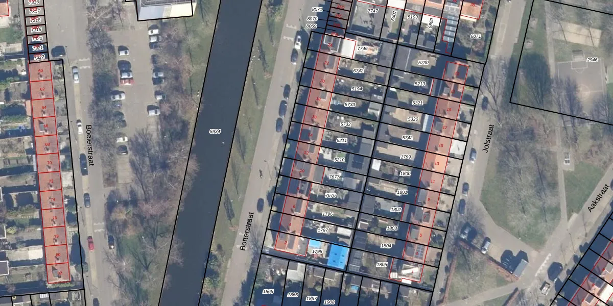 Het perceel waarop Botterstraat 12 staat heeft een oppervlakte van 169 m². Dit is een middelgroot perceel. De perceeloppervlakte wordt geregistreerd door het Kadaster. Gedetailleerde informatie over de maten van dit perceel kunt u vinden in het rapport Kadastrale kaart met maatvoering van Botterstraat 12.