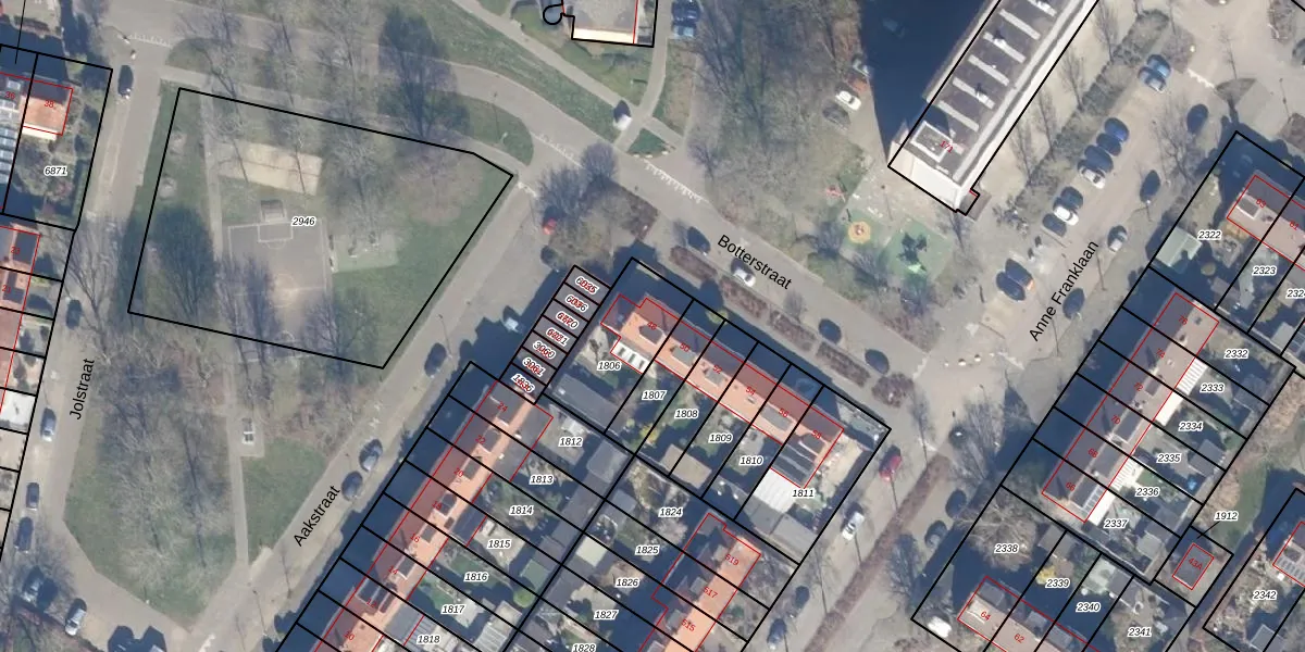 Gebruik de zoekbalk of klik op een perceel voor informatie over de adressen binnen dit perceel.