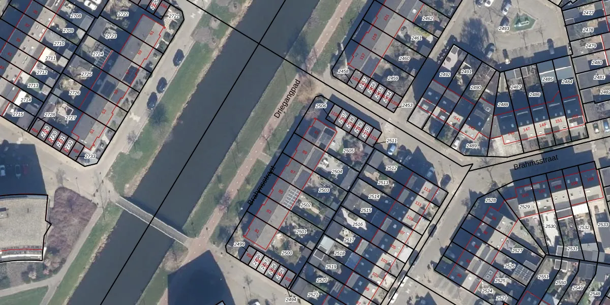 Brahmsstraat 89 is gelegen op kadastraal perceel PMR00H2504. Deze kadastrale aanduiding is uniek en wordt gebruikt door het Kadaster om eigendomsrechten en andere zakelijke rechten vast te leggen. Het perceel maakt onderdeel uit van de kadastrale gemeente Purmerend.