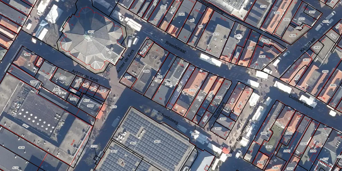 Het perceel waarop Breedstraat 12-E staat heeft een oppervlakte van 270 m². Dit is een middelgroot perceel. De perceeloppervlakte wordt geregistreerd door het Kadaster. Gedetailleerde informatie over de maten van dit perceel kunt u vinden in het rapport Kadastrale kaart met maatvoering van Breedstraat 12-E.